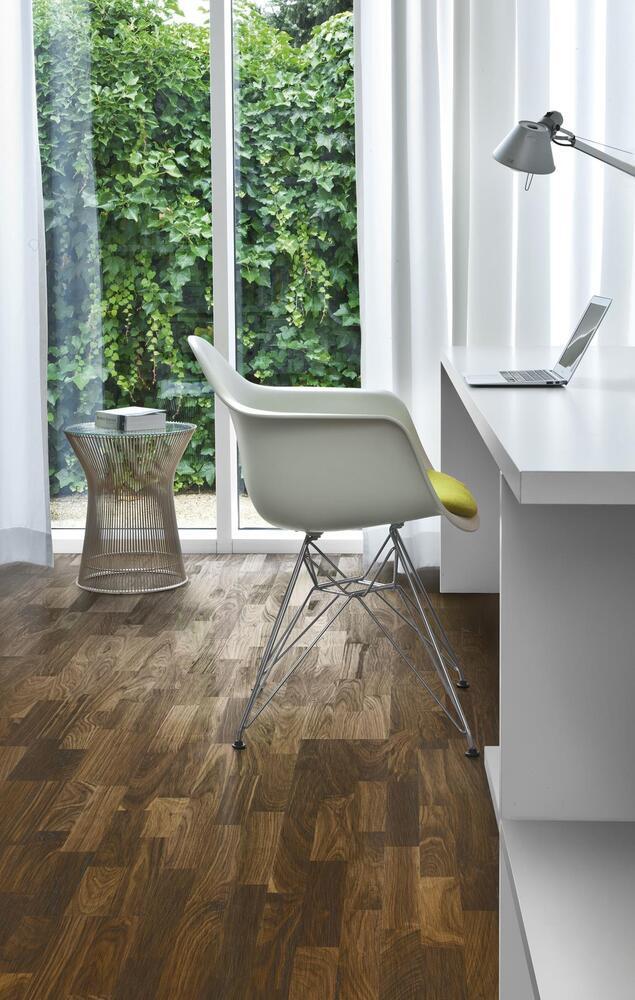 Ek Valnöt Montreal, är en lackad 3-stav med naturliga färgvariationer från den nordamerikanska valnöten.