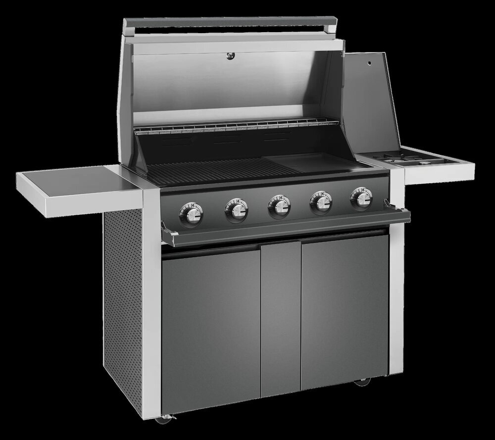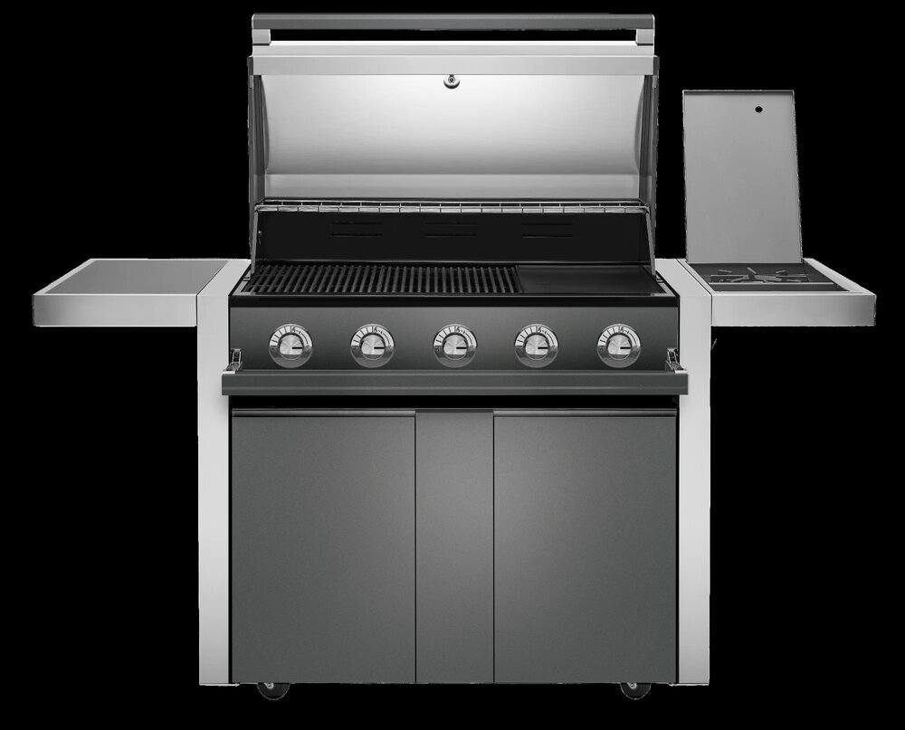 Denna moderna australiensiska grill från 1700-serien har en helt ny design. Kontrollpanelen döljs när grillen inte används. Frontpanelen fälls ner när grillen ska användas och fungerar då som extra avlastningshylla. Modellen finns både för inbyggnad och med underskåp i rostfritt stål. Locket är dubbelmantlat och har en integrerad termometer. Din familj och dina vänner kommer att älska de saftiga och krispiga rätterna du kan laga på den här BBQ:n.