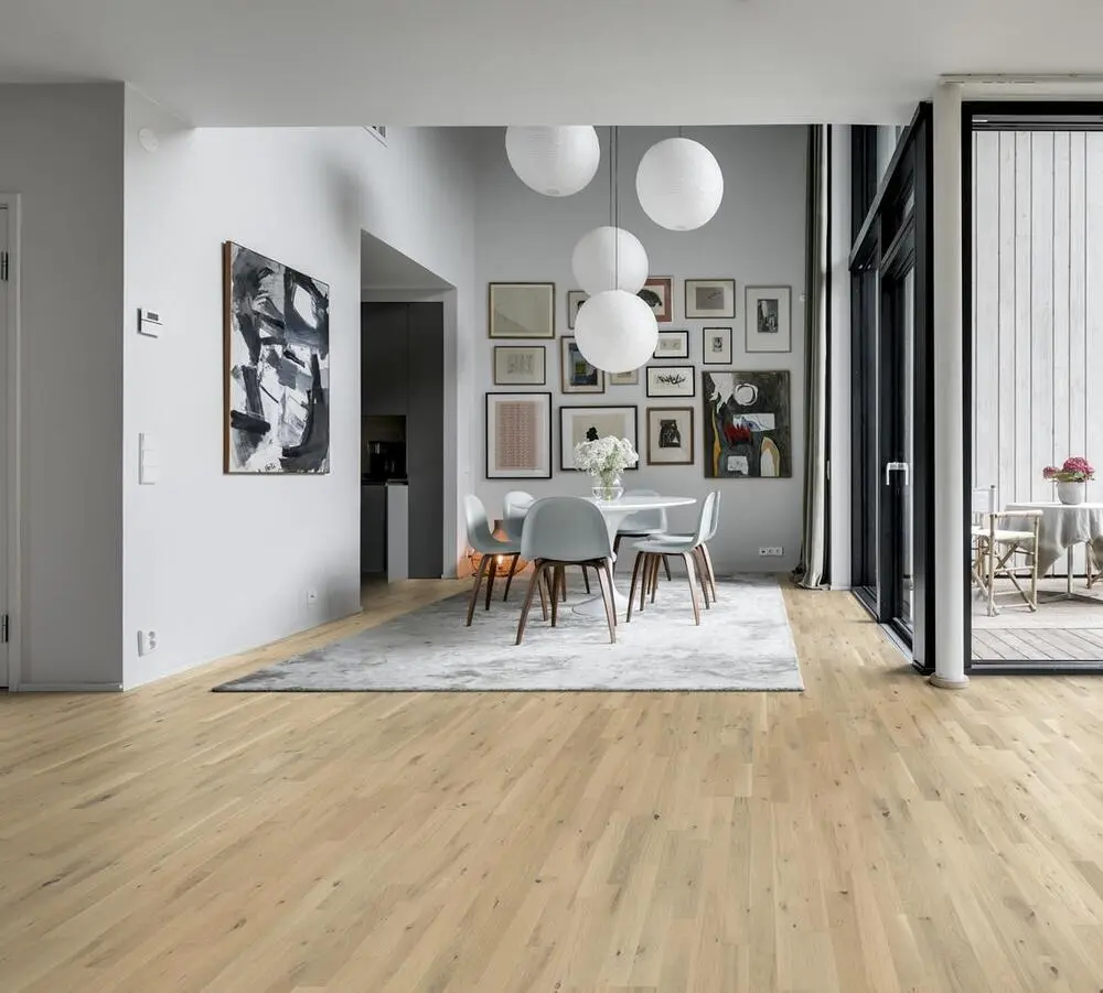 Frosted Oat Strip, är inspirerad av sensommarskörden täckt av frost. Den mycket vita och genomskinliga pigmenteringen låter det rustika träet förstärka det naturliga mönstret, kompletterat med en ultramatt finish.