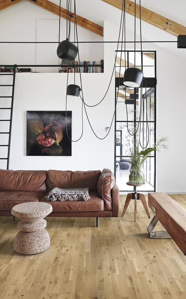 Urban brown Strip, är inspirerad av vaniljglass med en touch av grått. Pigmenteringen är applicerad i ett tunt lager för att framhäva träets knotor och sprickor samt en ultramatt finish.