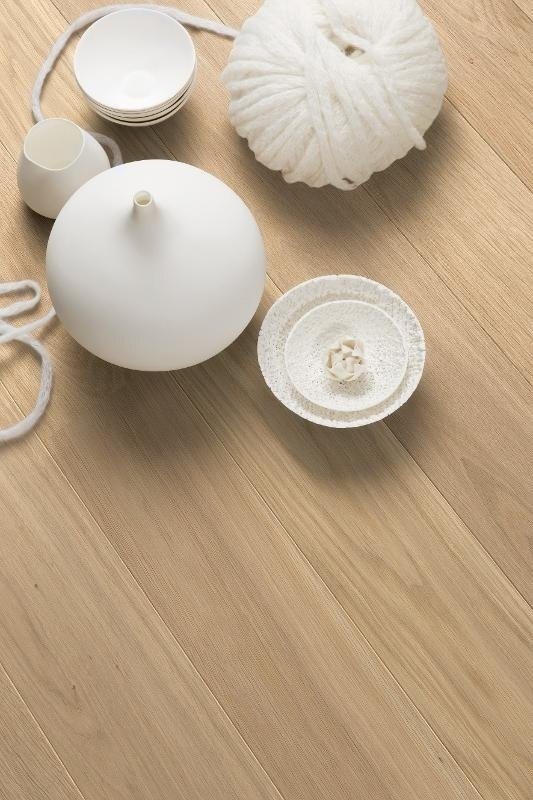 Behandling: Live Pure är en tunn, ultramatt ytbehandling som ger BOEN-golv utseende som obehandlat trä - både vad gäller färg, liv och struktur. Men den skyddar golvet mot damm och smuts samt flytande och kemiska ämnen. Den nya yttekniken skyddar golvet genom att tränga in i träet. Live Pure-golv har mycket litet behov av underhåll.