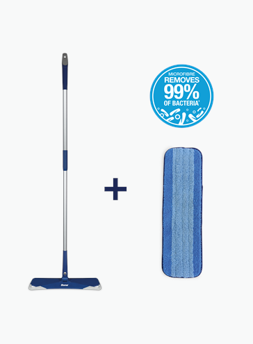 Bona Premium mikrofibermopp, med ett hållbart teleskopmopphandtag och extra stort mopphuvud, ger ett enkelt och snabbt sätt att rengöra dina golv på. Mjuka, flexibla hörn skyddar möbler och golvsocklar från skador.