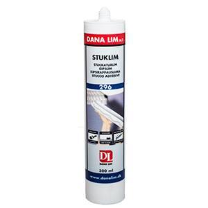 Stuklim 296 är ett vattenbaserat lim och spackelmedel som i ett arbetsmoment monterar och spacklar stucklister och rosetter i polyuretan (PU) och polystyren (PS). Stuklimmet kan slipas och övermålas.