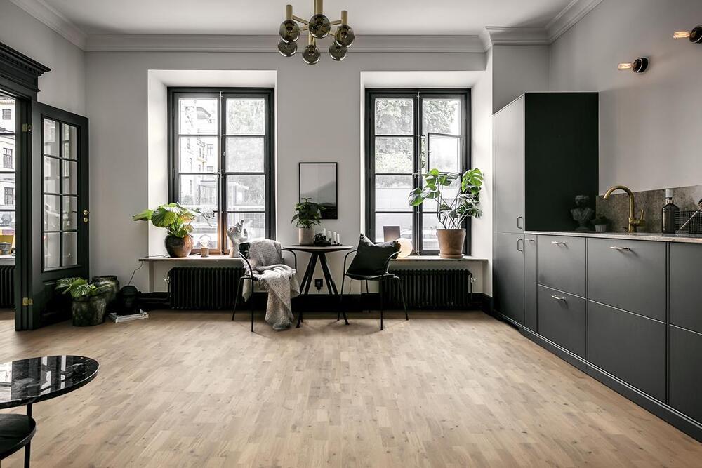 Ek Crystal, bevarar känslan av nyhyvlad ek genom att lägga till en varmare vit ton som påminner om färgen hos citrinkristallen. Den framhäver ekens egenskaper, såsom kvistar, struktur och den vackra kärnveden. Den matta lackytan tar bort glansen samtidigt som den skyddar träet mot dagligt slitage.
