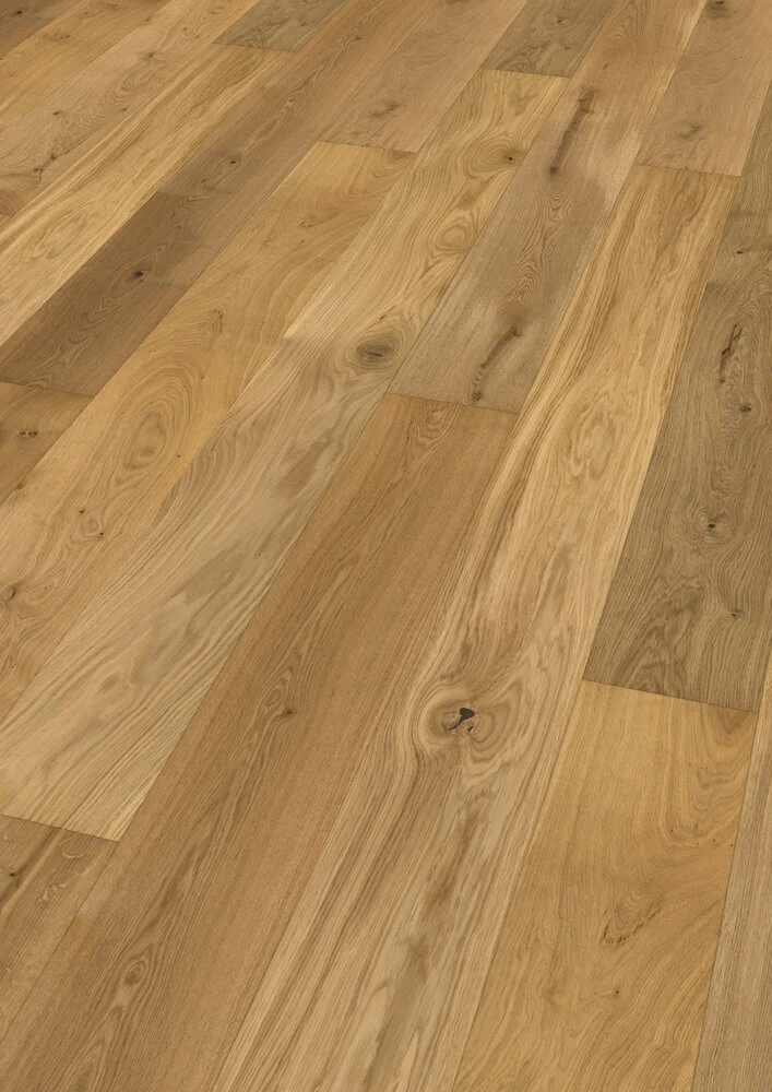 Ter Hürne Estate Collection i fiskbensmönster kombinerar klassisk estetik med modern funktionalitet. Den eleganta fiskbensdesignen skapar rörelse och karaktär i rummet, samtidigt som de äkta trästavarna tillför värme och naturlig skönhet. Ytan är slitstark och behandlad så att trädets struktur och lyster bevaras vackert över tid. Tack vare det smarta CLICKitEASY-systemet är golvet snabbt och precist att lägga – perfekt för både proffs och gör-det-själv-lösningar. Ett stilfullt val för både traditionella och moderna hem. Ett elegant val för dig som vill ha ett hållbart trägolv med känsla för detaljerna.