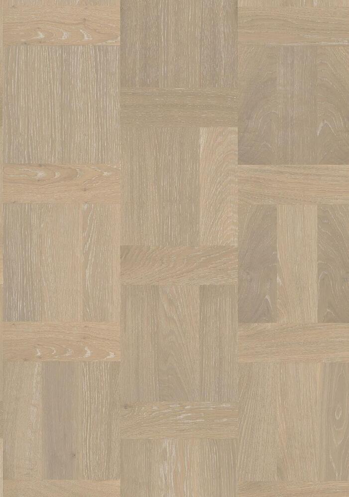 Ek Palazzo Bianco, är ett vitpigmenterat golv med stavar i holländskt mönster. Golvet levereras som färdiga mönsterbrädor och installeras på samma enkla sätt som andra Kährs flerskiktsgolv. Var noga med mönstret vid läggning.