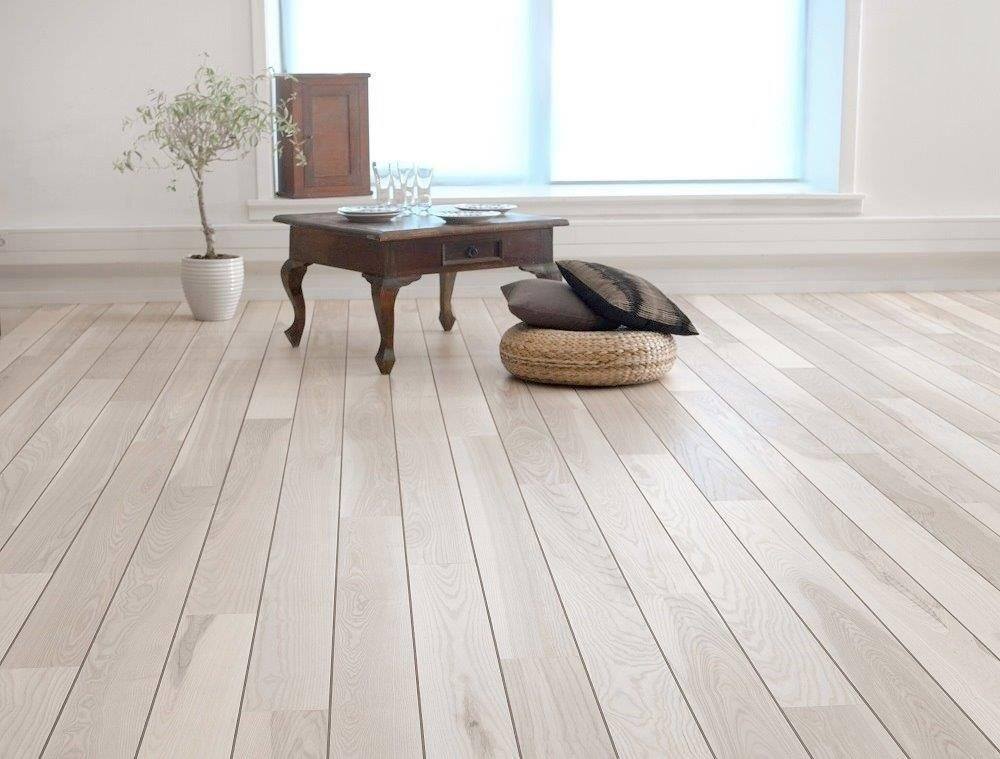 Ett snyggt, klassiskt lamellbyggt plankgolv i skeppsplanksstil.