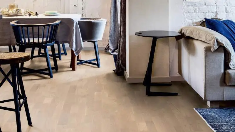 Ytbehandling: Vit, klaroljad och finborstad yta, vilket ger golvet ett ljust utseende.