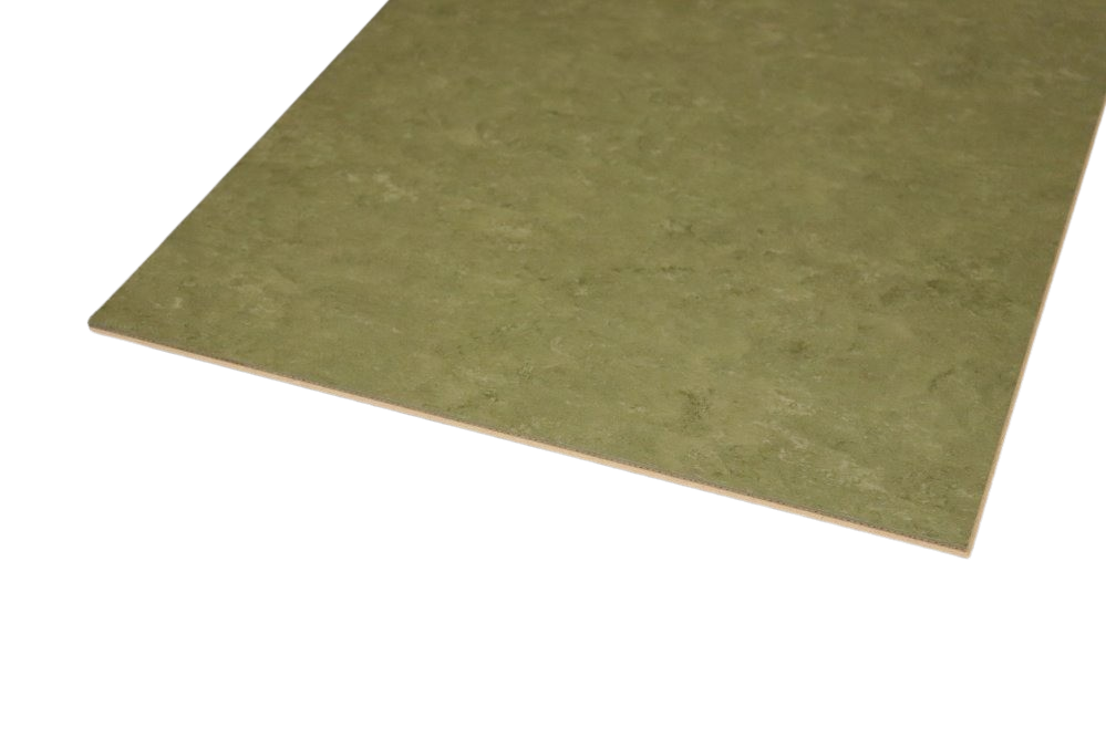 Linoleumplattorna är uppbyggda med 1,2 mm korkbaksida, 6,8 mm HDF-mellanlager och 2 mm slitstarkt linoleumskikt ovanpå. På grund av korkbaksidan behöver inget ytterligare underlagsmaterial läggas under golvet, endast ångspärr där det är nödvändigt.