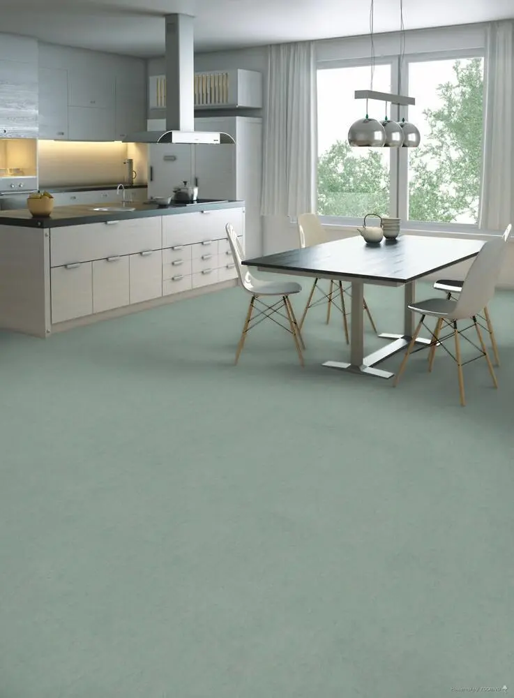 Linoleumplattorna är uppbyggda med 1,2 mm korkbaksida, 6,8 mm HDF mellanlager och 2 mm slitstarkt linoleumtopplager. På grund av korkbaksidan behöver du inte lägga något extra underlag under golvet, endast ångspärr där det är nödvändigt.