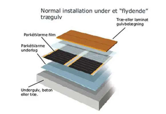 Golvvärme under trägolv, parkett, laminat och liknande.