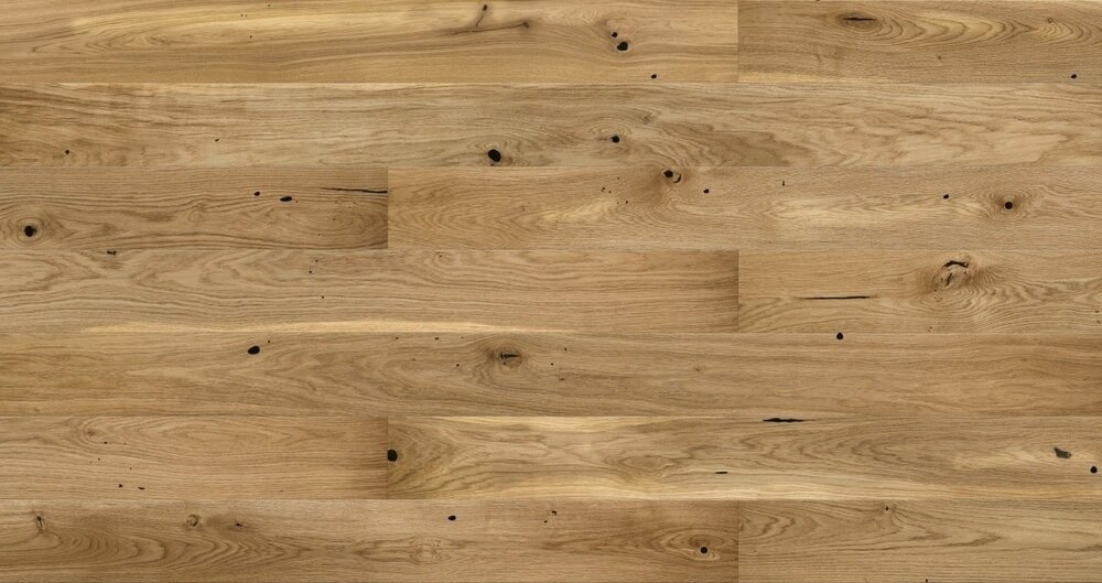 Rustikt trägolv med 180 mm breda plankor i vacker naturlig sortering, fasning på alla sidor samt 2,5 mm slitlager. Borstad Natur mattlack ger en vacker naturlig yta, skyddar mot slitage och gör golvet lätt att underhålla. Med G5S klicksystem så är golvet enkelt att lägga utan lim.