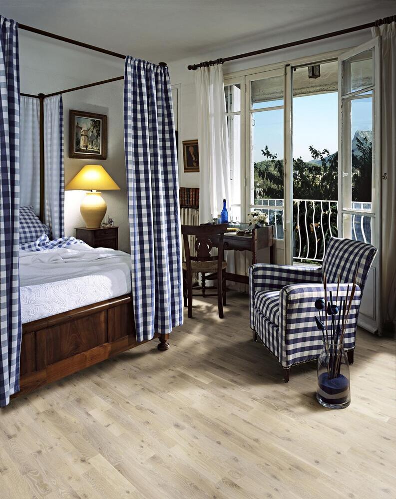 Ek Dew, en kombination av golvets särpräglade trästruktur tillsammans med den vita patinan från naturoljan bidrar till en fräsch omgivning.