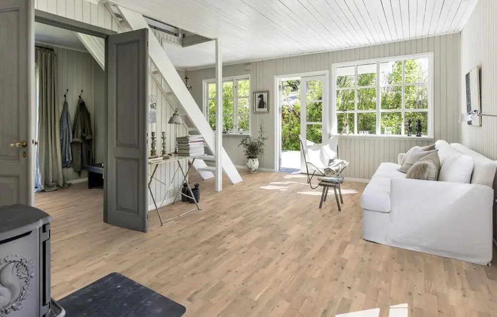 Ek Crystal, bevarar känslan av nyhyvlad ek genom att lägga till en varmare vit ton som påminner om färgen hos citrinkristallen. Den framhäver ekens egenskaper, såsom kvistar, struktur och den vackra kärnveden. Den matta lackytan tar bort glansen samtidigt som den skyddar träet mot dagligt slitage.