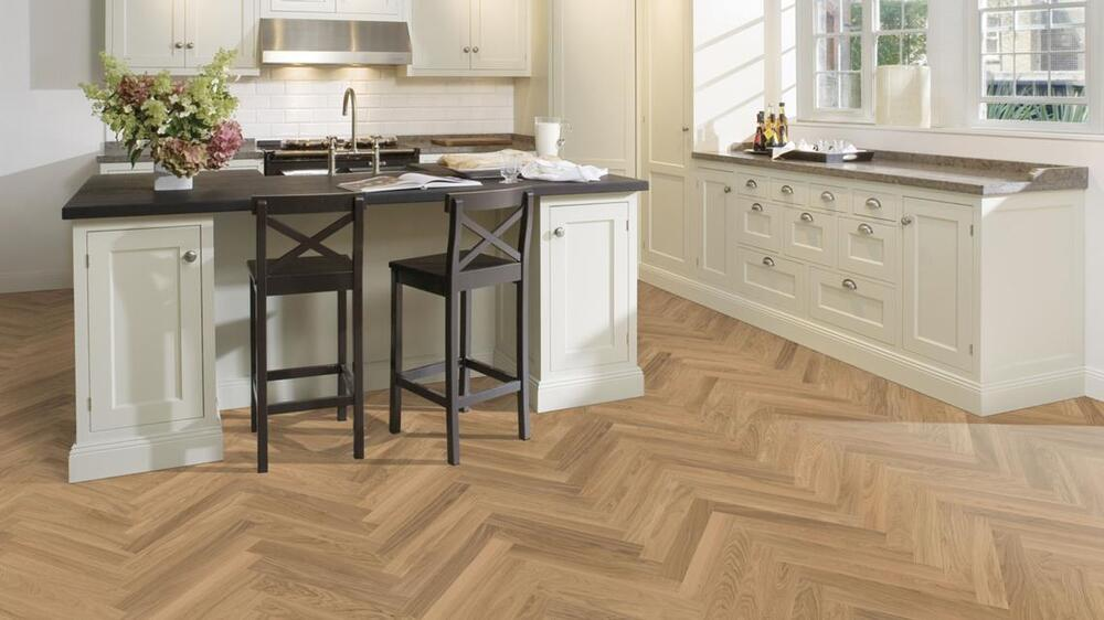 2-lagers fiskbensparkett. Studio Collection är ett tvålagersgolv, det vill säga att det inte har någon fanerbaksida. Produkten ska installeras genom att limmas fast mot undergolvet med lämpligt och avsett lim och bör utföras av erfarna hantverkare. Produkten levereras i paket med både vänster och höger plankor
