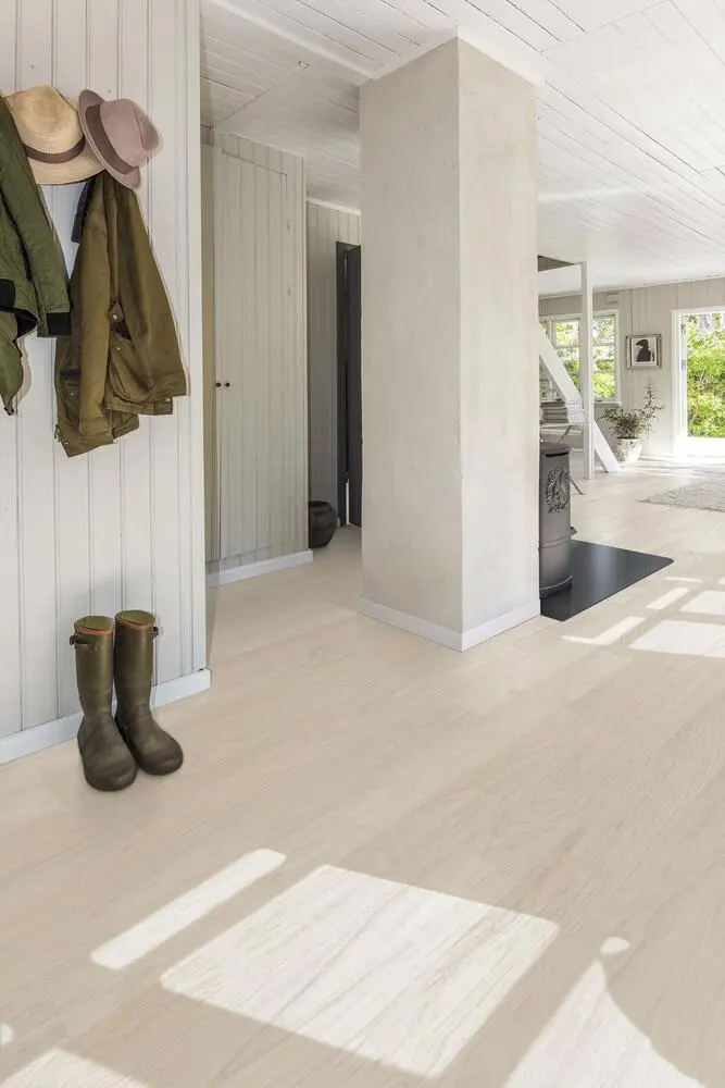 Coconut Cream Wide, en mjölkaktig, krämig, ogenomskinlig ljus färg som för tankarna till tropiska sandstränder. Coconut Cream Wide är ett infärgat 1-stavs ekgolv från vår Life Collection. En nedtonad trägolvsserie med få kvistar och en autentisk känsla. Fyrsidig mikrofasning av kanterna ger ett klassiskt helplankutseende. Den innovativa matta lackeringen eliminerar effektivt blänk och skyddar golvet mot vardagligt slitage.