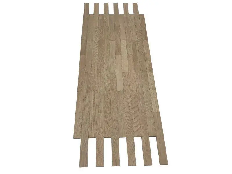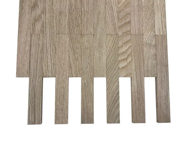 Mosaikparketten levereras i nät på ca. 28x64 cm.