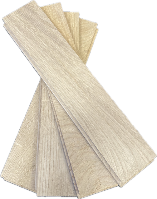 Fiskbensparkett i massiv ek - 15x70x500 mm.