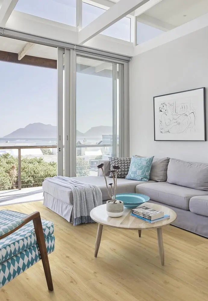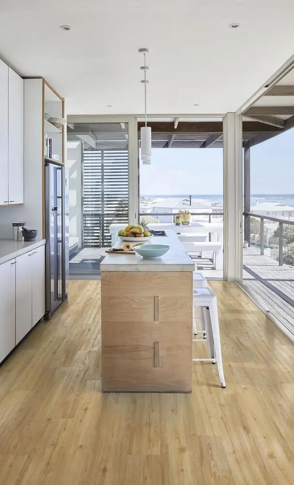 Kährs Luxury Tiles Oulanka är inspirerat av de ljusa gula och bruna tonerna från vetefält som svajar i vinden. Ett av våra mest populära LVT-golv. Autentiska träfärger och realistiska karaktärsdrag som kvistar och sprickor framhäver detta golvs naturliga utseende.
