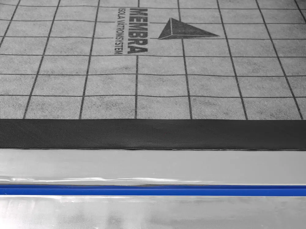 Snabb, säker och mycket användarvänlig membranlösning för golv och väggar i våtrum. Med det här självhäftande membranet kan du få låg bygghöjd i ditt våtrum eftersom det fästs direkt på Nordic Gulvvarmeplader. Plattorna monteras direkt på membranet. Membranväven är baserad på en kärna av PE-skum med PP-filt på ovansidan. Hela undersidan är belagd med ett aktivt klister som är skyddat av en silikonbehandlad folie. Folien är delad i två för enkel och säker montering. Membranväven är både diffusions- och vattentät och ger tillsammans med övriga systemkomponenter en trygg och säker membranlösning. Dessa är också självhäftande, så det krävs ingen 2-komponentslim vid monteringsarbetet.