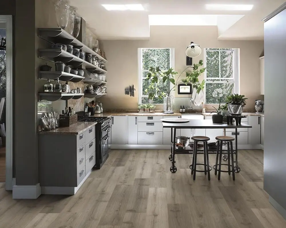 Andre produktoplysninger: Til flydende og limfrie montering i bolig og offentlig rum. Maksimal holdbarhed og stabilitet gennem den stive SPC-kerne og det unikke 5G click-system, der muliggør nem installation ved at klikke gulvene sammen. Lavet af vinyl der er fri for phthalater og har IXPE lydreducerende skumbagside, der effektivt reducerer og kontroller støj. Overfladebehandlet med en stærk keramisk belægning, der er modstandsdygtig overfor slid, ridser og vand. Kan monteres ovenpå eksisterende gulve som gør det ideelt til renoveringsprojekter.
