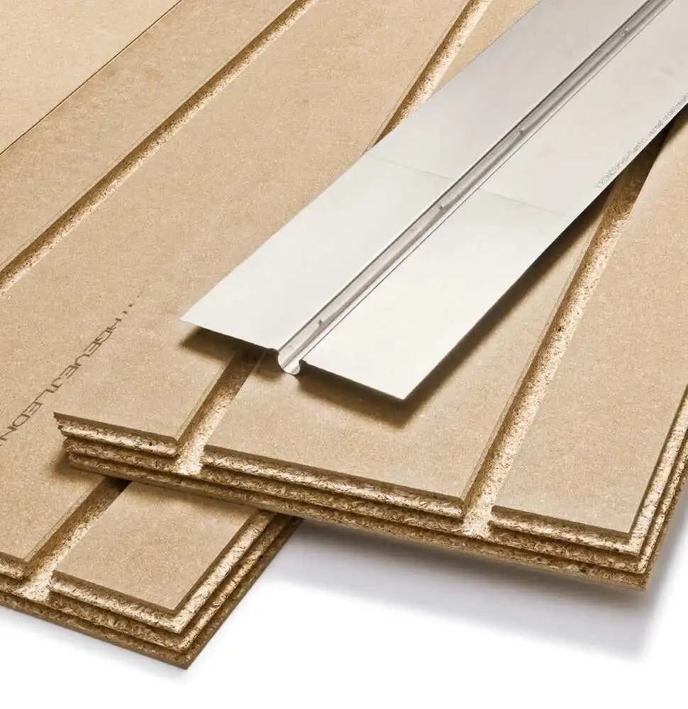 Novopan Klimagulv EN312 P6 levereras med ett täckmått på 1800 × 480 mm. Golvplattan har frästa spår per 240 mm för alu-värmefördelningsplåtar och 20 mm värmerör. Det precisa mittavståndet säkerställer en snabb och korrekt läggning av värmefördelningsplåtar och värmerör, och ger en optimal värmefördelning och utnyttjande av värmen över hela golvytan.