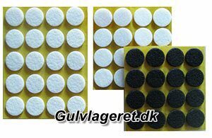 Självhäftande filtpuckar i vitt eller svart för montering under stolben och liknande.