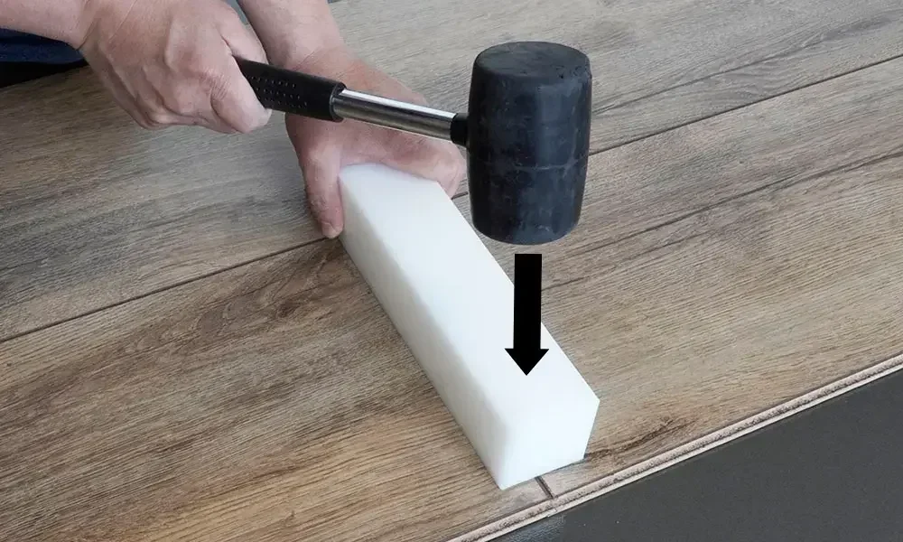 Praktisk slagkloss, som används vid golvmontering. Används för att säkerställa att golvbrädorna sitter jämnt och tätt. I ett praktiskt material som inte färgar av sig. Använd slagklossen vid montering av golv med klicksystem: 1clic2goPURE