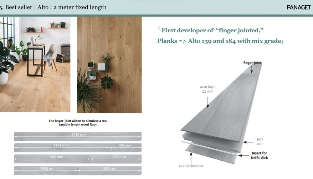 Panaget Alto-serien är ett mästerverk av tidlös skönhet och elegans. Inspirerad av ekens naturliga variation i fransk ek erbjuder detta golv en unik blandning av charm och förfining. Varje bräda i Alto-serien är noggrant utvald för sin naturliga karaktär och sina varierade toner, vilket skapar ett levande och autentiskt uttryck.