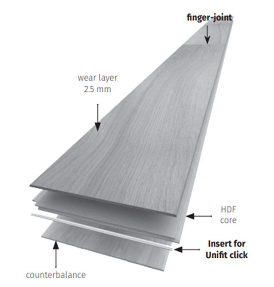 Uppbyggnad: 3-lagers uppbyggnad med stabilt HDF-mellanskikt.