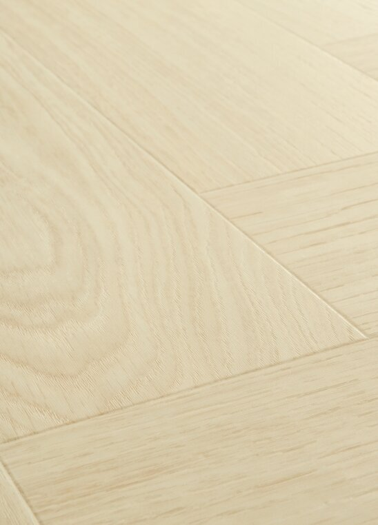 Light Danish Oak är en lugn och exklusiv fiskbensparkett i en ljus vit ekfärg. De små kvistarna i eken ger golvet liv, samtidigt som det ser rent och sofistikerat ut. Vinylgolvets raffinerade struktur i borstat trä ger det ett mycket naturligt utseende och känsla. Plankstorleken på Voxnan-fiskbensgolvet ger ditt rum en känsla av elegans och lyx. Som alla Rigid-vinylgolv är Voxnan mjukt och tyst att gå på, men har ändå en extra stark kärna och hög motståndskraft mot fläckar och slitage. Tack vare AquaSafe-tekniken har det en vattentät yta, vilket gör det lämpligt även i kök och entréer. Voxnan Pad Pro är extra snabbt och enkelt att montera tack vare det unika Unizip®-klicksystemet och det fastmonterade underlaget.