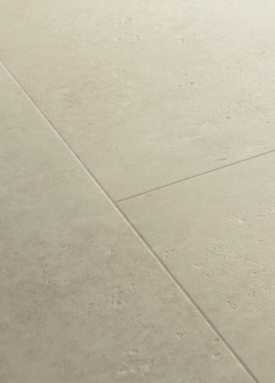 Desert Concrete erbjuder det tidlösa uttrycket av råa betongplattor i en klassisk beige sandstensfärg. Den polerade strukturen med både släta ytor samt grövre prickar och fördjupningar skapar ett mycket naturligt utseende och en naturlig känsla. De stora vinylplattorna ger rummet ett exklusivt betongutseende samtidigt som de framhäver inredningen. Som alla Rigid-vinylgolv är Limfjord mjukt och ljudlöst att gå på, men har ändå en extra stark kärna och hög motståndskraft mot fläckar och slitage. Tack vare AquaSafe-tekniken har det en vattentät yta, vilket gör det lämpligt även i kök och entréer. Limfjord Pad Pro är extra snabbt och enkelt att installera tack vare det unika Uniclic®-klicksystemet och det monterade underlaget.