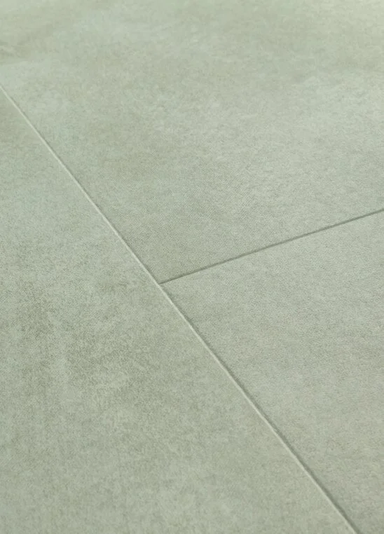 Velvet Leaf bjuder på det klassiska uttrycket från mattplattor i en mjuk salviagrön färg. Den livfulla effekt som efterliknar mattryck tillsammans med den taktila strukturen på textilytan skapar ett mycket naturligt utseende och känsla av mjuka mattplattor. De stora vinylplattorna ger rummet ett lugnt och inbjudande uttryck. Som alla Rigid-vinylgolv är Limfjord mjukt och tyst att gå på, men har ändå en extra stark kärna och hög motståndskraft mot fläckar och slitage. Tack vare AquaSafe-tekniken har det en vattentät yta, vilket gör det lämpligt även i kök och entréer. Limfjord Pad Pro är extra snabbt och enkelt att installera tack vare det unika Uniclic®-klicksystemet och det monterade underlaget.