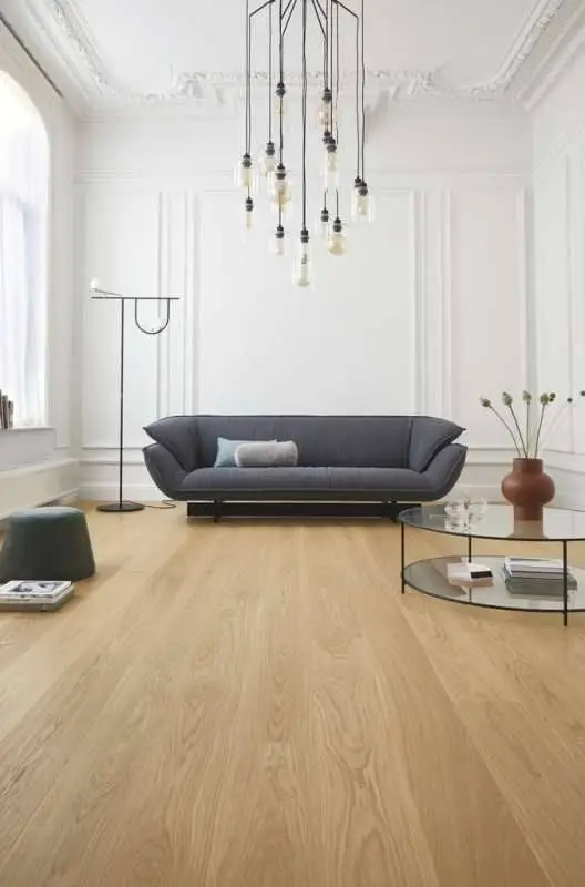 Shade är eleganta golv i ett brett urval av naturliga färger. Här ger bearbetning och lasering dig ett rum som känns både uttrycksfullt och ombonat på samma gång.