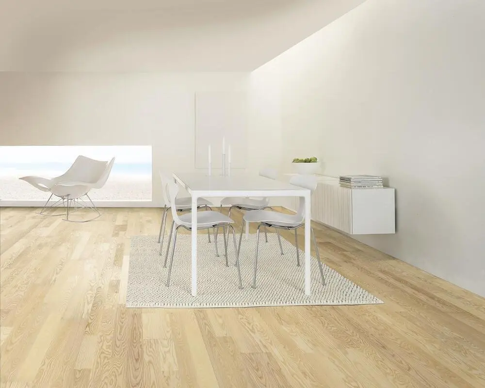 Ask Falsterbo, den fina vita nyansen på detta askgolv är förstärkt med en vit matt lack.