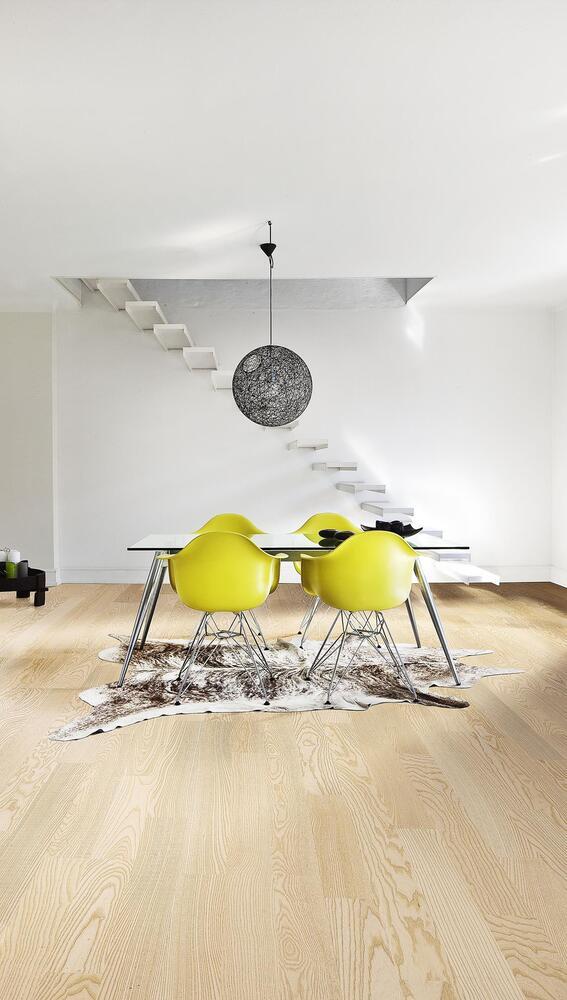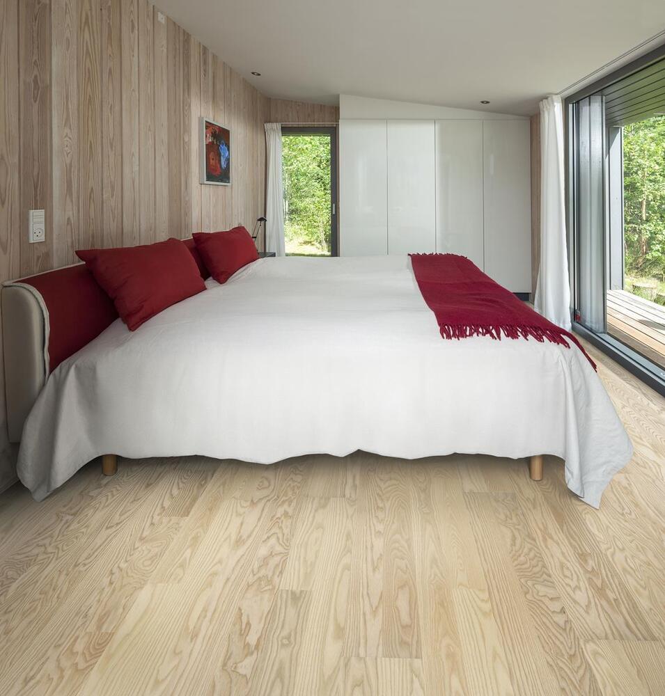 Ask Falsterbo, den fina vita nyansen på detta askgolv är förstärkt med en vit matt lack.