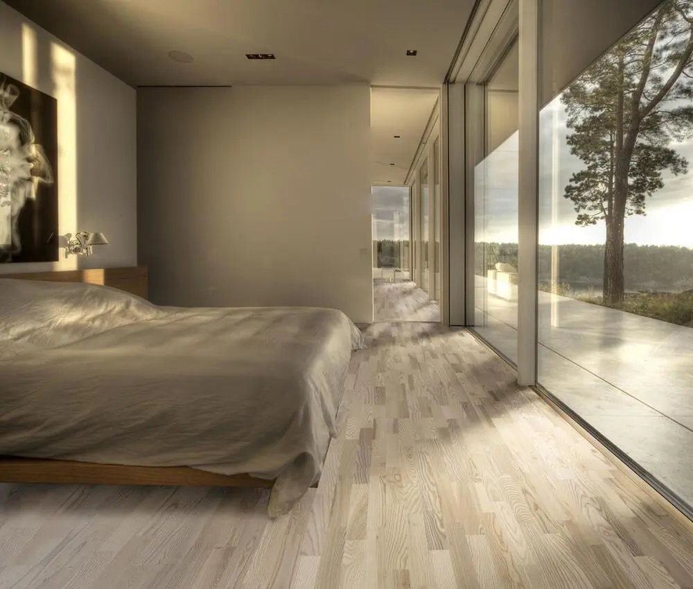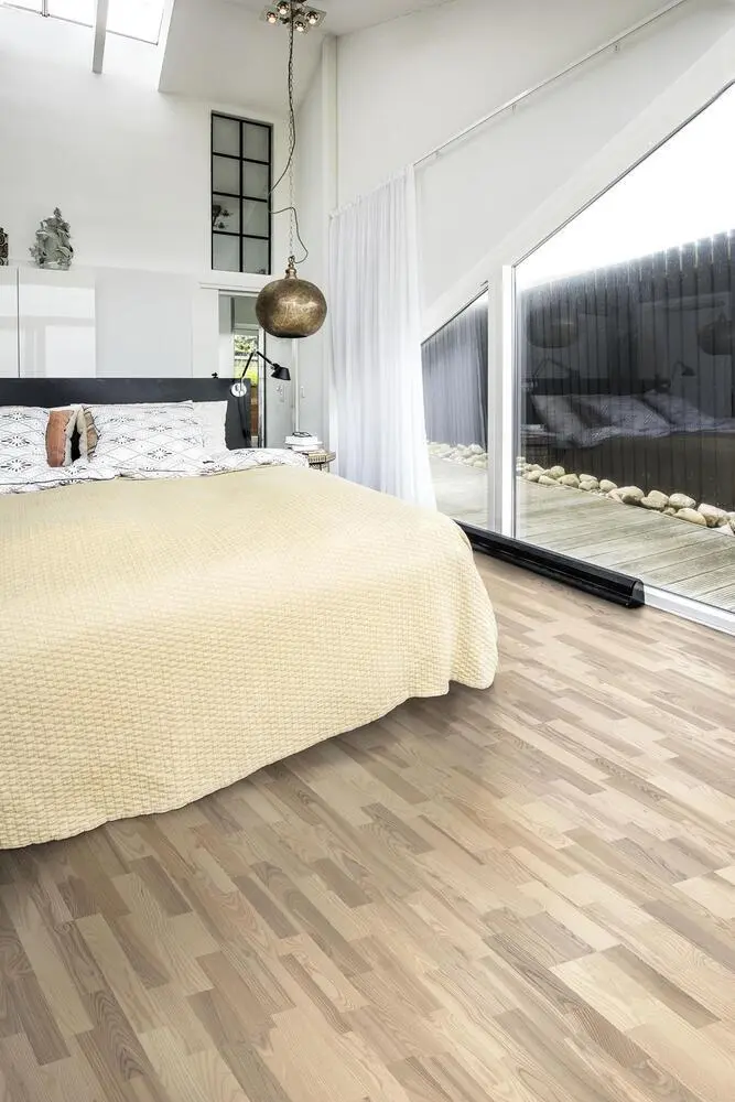 Ask Falsterbo, kombinerar askens naturlighet och livfullhet med den vita matta lackens elegans och lätthet. Lacket framhäver träets naturliga skönhet och ger hela golvet en mjuk och tilltalande yta.