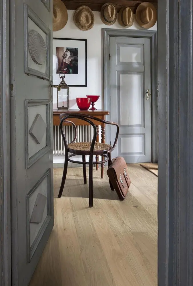 Ek Brighton, är ett exklusivt 1-stavs golv (planka). Det betyder att den synliga delen av varje planka (slitlagret) är tagen från ett enda trästycke. Naturens egen design med kvistar och en livlig struktur.