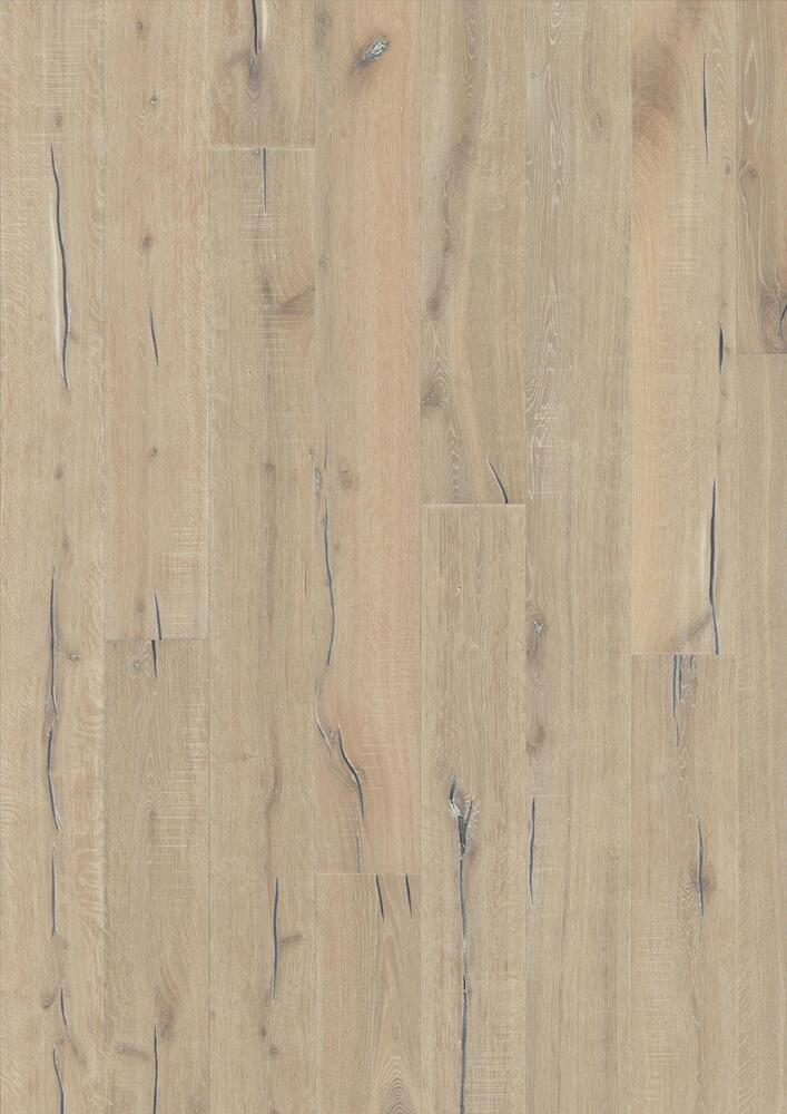 Aspeland, ett golv med slitage i ljusa färger. Aspeland är ett mycket rustikt golv med kvistar och sprickor som ger det ett åldrat, renoverat utseende. Naturliga variationer i träets färg kan förekomma, från ljusbrun till mörkbrun.