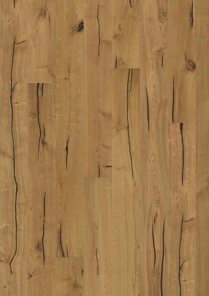 Finnveden, är ett mycket rustikt golv med kvistar, sprickor och utfyllnad. Vibrerande naturliga färger med blomstrande toner av bärnsten och honung.