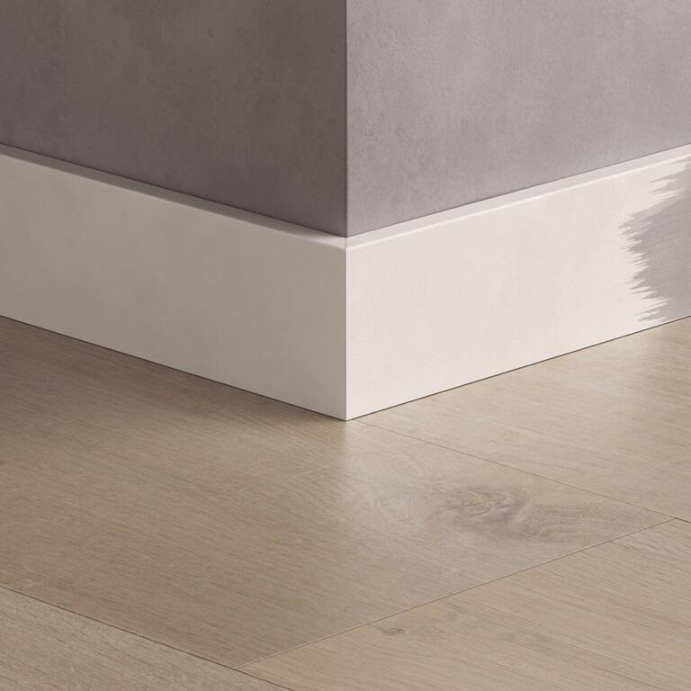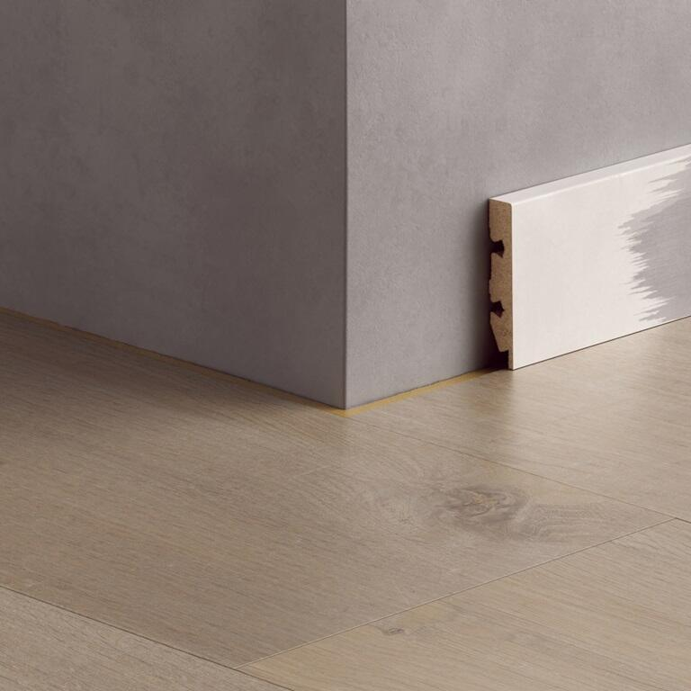 • Samma form som färgmatchade fotlister Välj mellan, eller kombinera, färgmatchade fotlister eller vita och målbara fotlister - de har exakt samma form! Använd samma tillbehör för att montera båda typerna av fotlister (pluggar, clips eller lim).