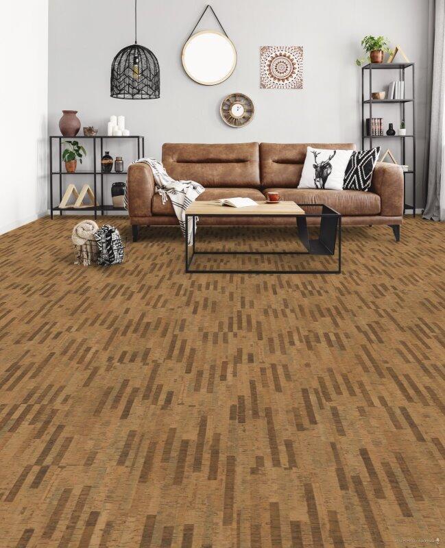 Plankorna är uppbyggda med 1,2 mm korkbaksida, 6,8 mm HDF-mellanskikt och 3 mm korkytlager. På grund av korkbaksidan behöver inget ytterligare underlag läggas under golvet, endast ångspärr där det behövs.