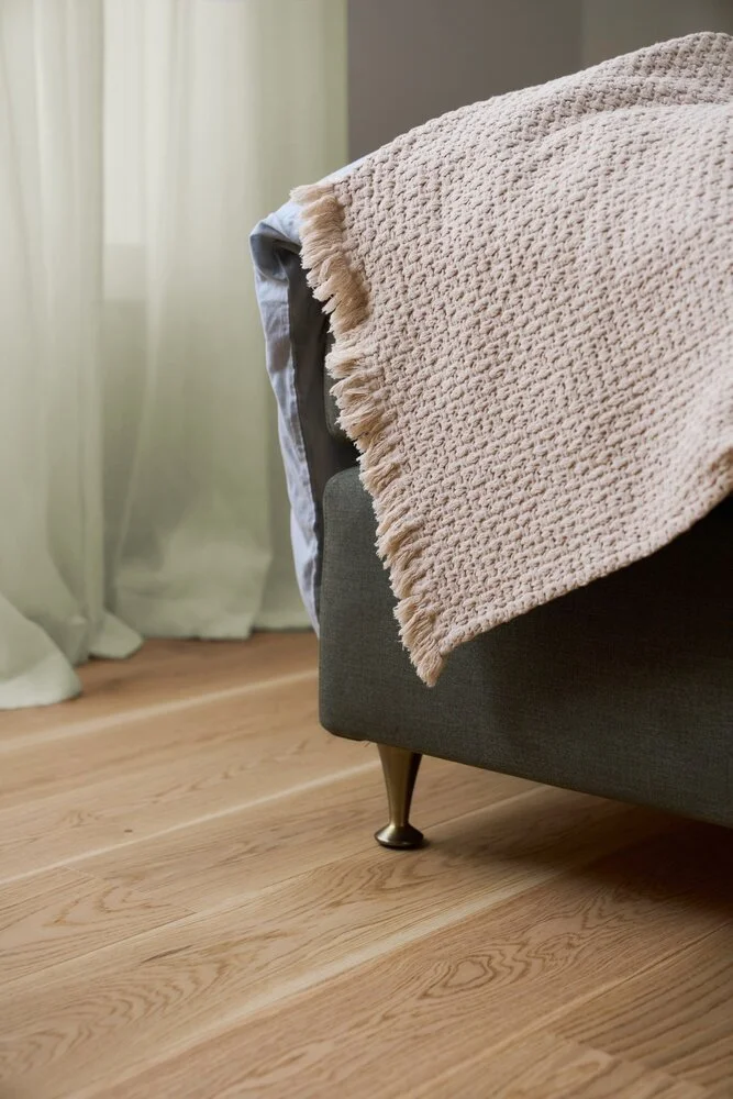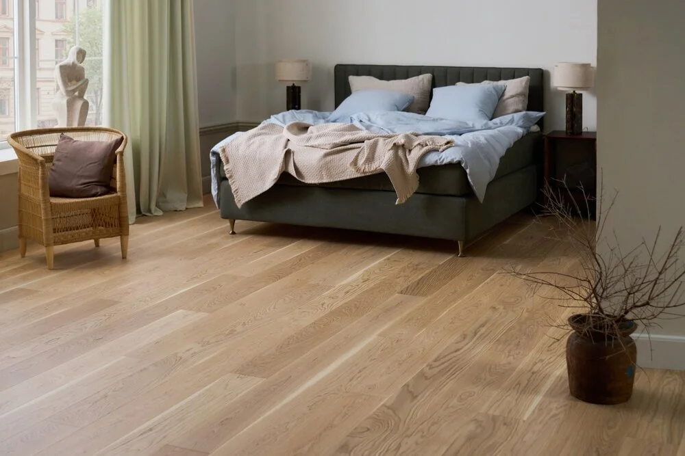 Ek Variant är en vacker sortering i vitt, som skapar ett karaktärsfullt och levande golv med splint och kvistar. Golvets vackra yta framhävs av en borstning som skapar en fin golvyta. Alla plankor är varsamt utvalda och sorterade. Plankorna är borstade för att framhäva träets ådring och gör ytan mindre känslig för repor. Golvet är behandlat med 8 lager ultramatt lack i natur.