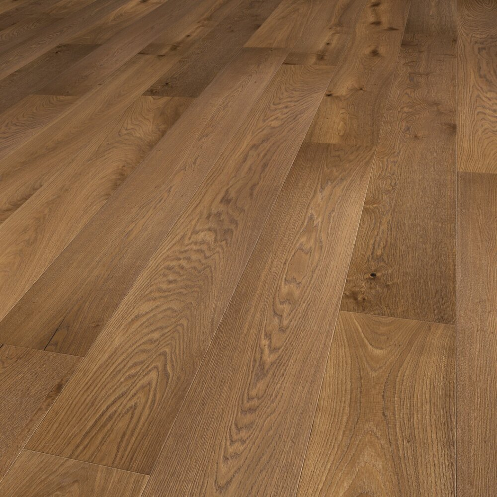 Här är ett exklusivt plankgolv med massor av karaktär. Den rökta behandlingen ger ekträet en djup, varm färgton, medan den borstade ytan framhäver träets naturliga struktur och ådring. Den oljade finishen understryker det autentiska uttrycket och ger golvet en behaglig, levande yta som bara blir vackrare med tiden. Ett självklart val om du vill ha ett elegant och tidlöst trägolv med ett lugnt, exklusivt uttryck – och samtidigt göra en riktigt bra affär på ett restparti.