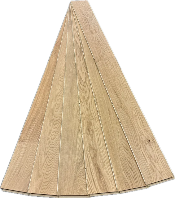 Fas/fog: Med fas på alla fyra sidor. Dvs. att varje enskild planka framhävs vackert av den lilla V-fogen som uppstår mellan plankorna.