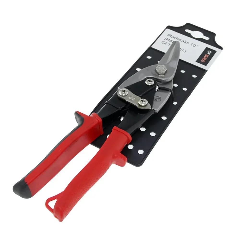 Den här 10" plåtsaxen från GT Build är speciellt utvecklad för precis kapning av värmefördelningsplåtar i aluminium. Saxen har böjda käftar utformade för högerskär, vilket innebär att den är gjord för att följa kurvor och snitt som svänger åt höger. Samtidigt förs det avklippta materialet åt vänster, så du hela tiden har fri sikt över snittlinjen.