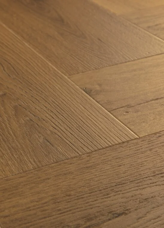 Caramel Valley Oak är ett mjukt, rustikt och elegant fiskbensparkett i en fyllig, varm brun ekfärg. De små kvistarna och sprickorna ger golvet liv, samtidigt som det ser rent och sofistikerat ut. Vinylgolvets raffinerade struktur i borstat trä och den autentiska plankeffekten ger det ett mycket naturligt utseende och känsla. Plankstorleken på Voxnan-fiskbensgolvet ger ditt rum en känsla av elegans och lyx. Som alla Rigid-vinylgolv är Voxnan mjukt och tyst att gå på, men har ändå en extra stark kärna och hög motståndskraft mot fläckar och slitage. Tack vare AquaSafe-tekniken har det en vattentät yta, vilket gör det lämpligt även i kök och entréer. Voxnan Pad Pro är extra snabb och enkel att montera tack vare det unika Unizip®-klicksystemet och det påmonterade underlaget.