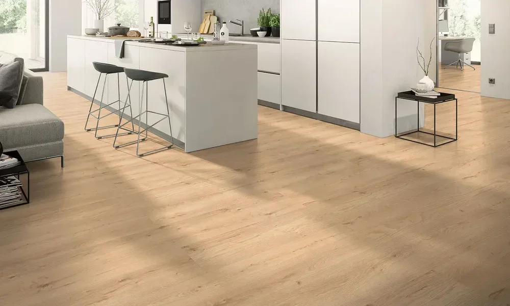 Vattentåligt laminatgolv i XXL – alltså långa och XX-tra breda plankor. Kanterna är extra förseglade så att fukt inte tränger in i fogarna. De fasade plankorna framhäver plankkänslan och ger ett exklusivt utseende. Golvet monteras med det superlätta klicksystemet Megaloc aqua protect, som gör det enkelt att lägga golvet. Ett riktigt bra och snyggt golv med naturligt utseende.