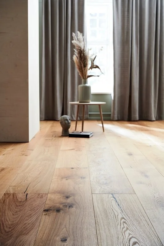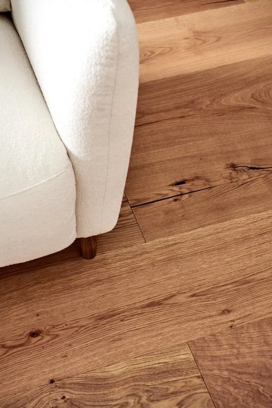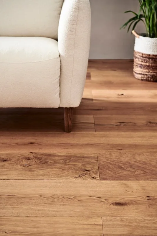 Trä är ett levande material, och det levererade golvet kan därför avvika från det som visas. Man bör alltid använda brädor från samma leverans i samma rum, eftersom det kan förekomma färg- och glansskillnader från produktion till produktion. Rustik utseende med kvistar upp till 90 mm. Det kan även förekomma ifyllda sprickor och kvistar liksom att brädorna kan innehålla splint. Levande sortering med ljusa och mörka nyanser.