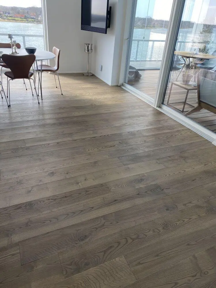 Wiking Ask Mjølner är det nya eleganta trägolvet i dämpade grå toner med ett fantastiskt färgspel - ytbehandlat med grå olja.